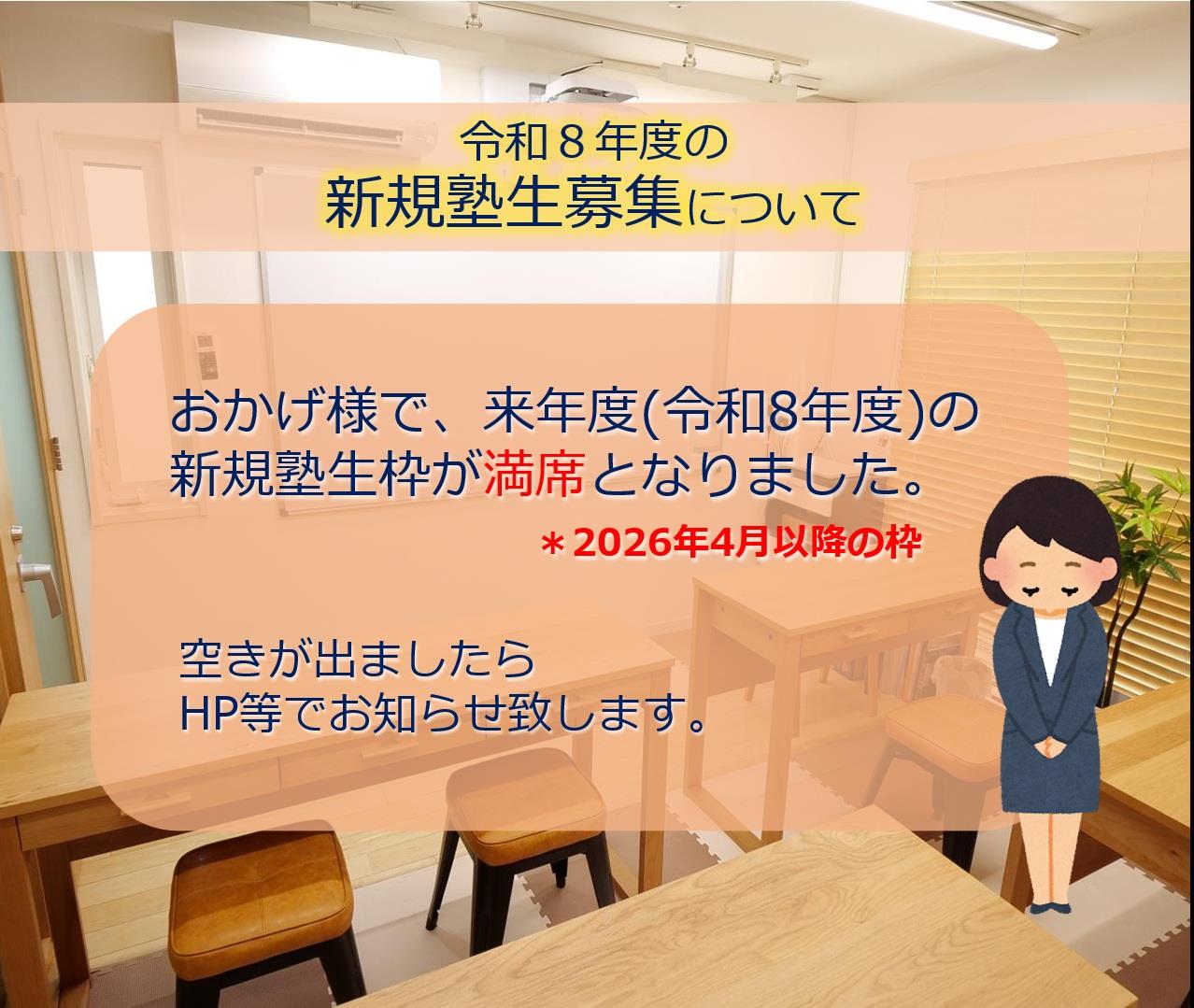 2026年度の生徒さんの募集は終了いたしました。